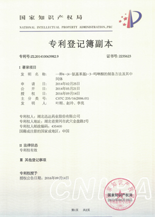 公司擁有一支高素質(zhì)科研隊(duì)伍,具備專業(yè)而高效的研發(fā)能力。近幾年,共取得科技成果30項(xiàng),其中9項(xiàng)獲國(guó)家發(fā)明專利,2項(xiàng)獲湖北省科技進(jìn)步獎(jiǎng),開發(fā)新產(chǎn)品8個(gè),綠色合成、手性合成和催化等技術(shù)引領(lǐng)行業(yè)發(fā)展。主要銷往歐美、日本、韓國(guó)、中東、印度等40多個(gè)國(guó)家和地區(qū)。